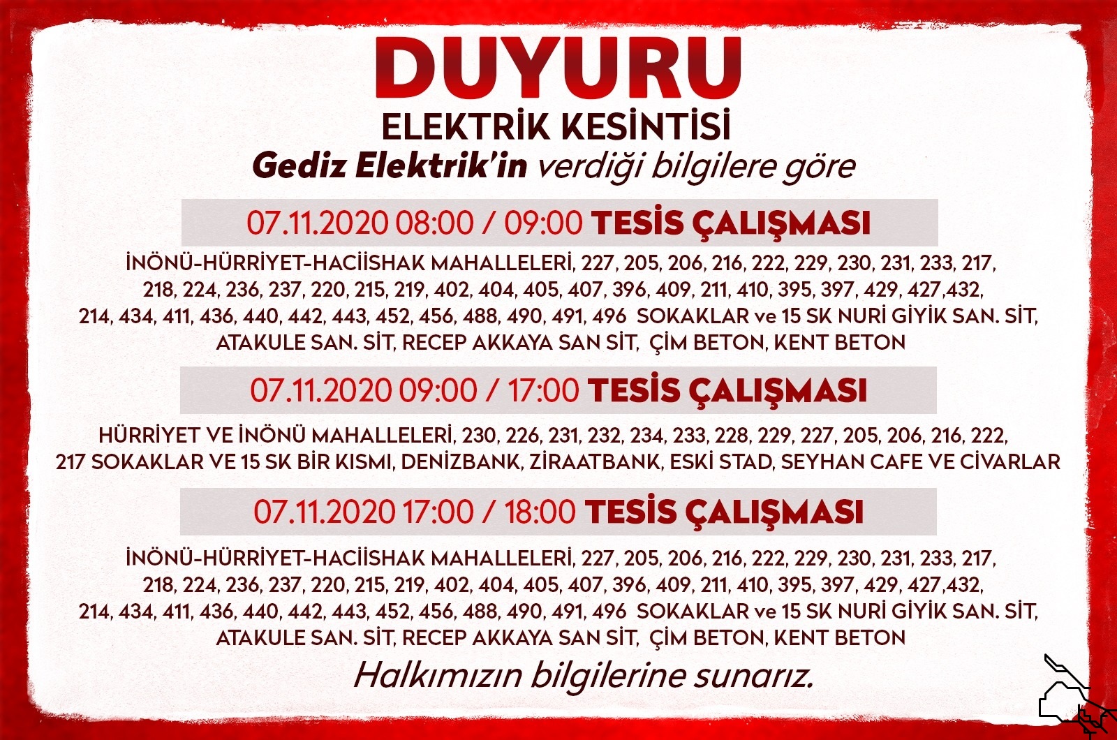 Akhisar’da son dönemde yaşanan elektrik kesintileri, sıkça gündeme gelmektedir. 2023 yılı itibarıyla, özellikle sonbahar aylarında gerçekleştirilen altyapı çalışmaları nedeniyle bir dizi planlı elektrik kesintisi yaşanmıştır. Türkiye Elektrik Dağıtım A.Ş.’nin (TEDAŞ) açıkladığı bilgilere göre, bakım ve onarım çalışmaları nedeniyle Akhisar ve çevresinde bazı bölgelerde elektrik kesintileri yapılmıştır.