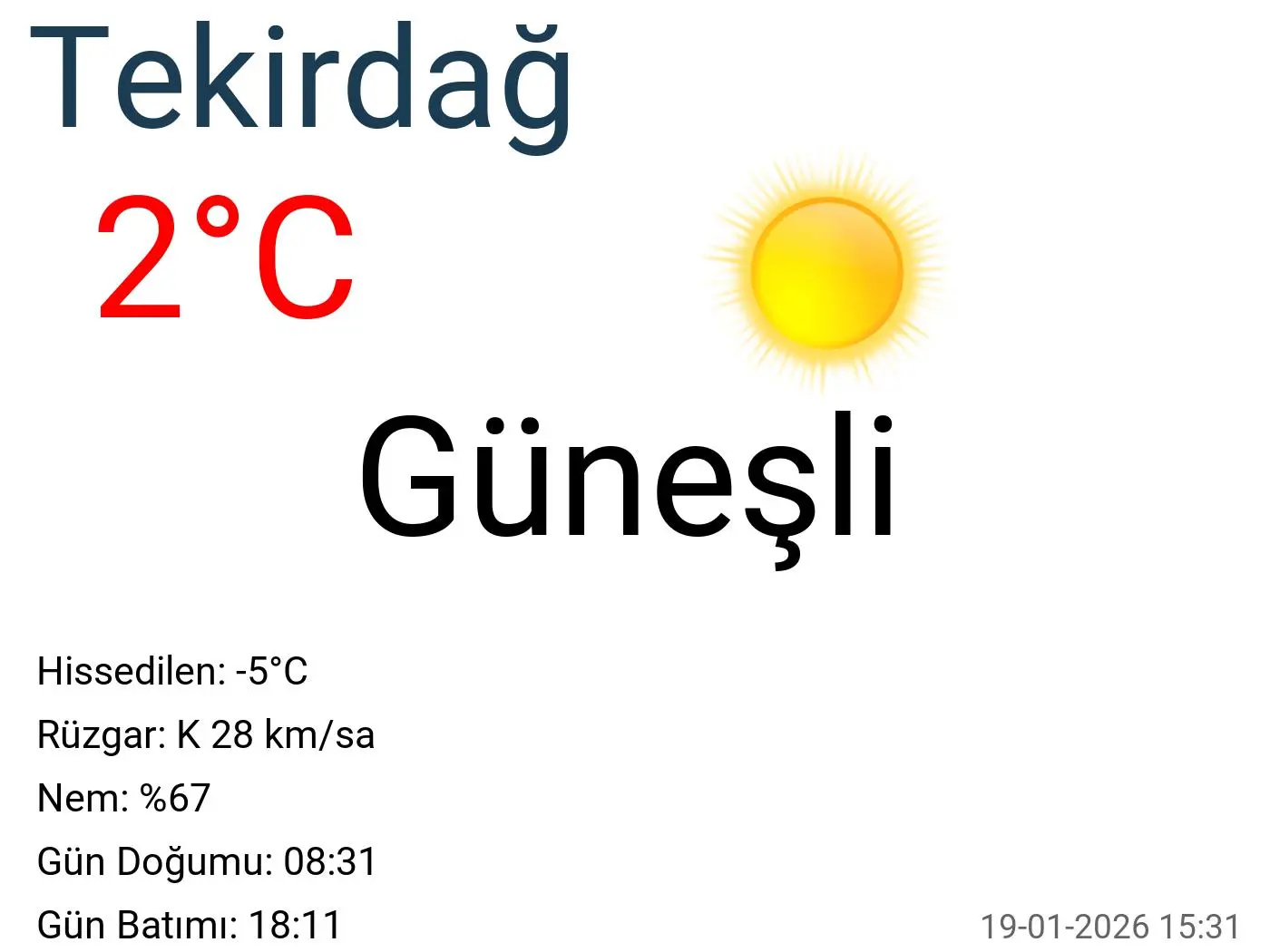 Tekirdağ’daki hava durumu, hem yerel halk hem de işletmeler için sürekli olarak takip edilmesi gereken bir unsurdur. Hava durumu raporları ve tahminleri, ilgili sektörler ve bireyler için önemli bilgiler sunmaktadır. Uzmanlar, önümüzdeki günlerde hava koşullarında ani değişiklikler olabileceğini vurguluyor. Bu nedenle, Tekirdağ’daki güncel hava durumu bilgilerini takip etmek, hem günlük yaşamı hem de iş faaliyetlerini etkileyen önemli bir husustur.